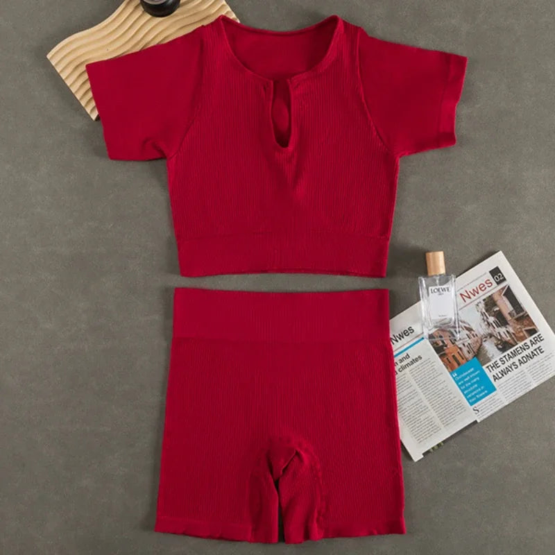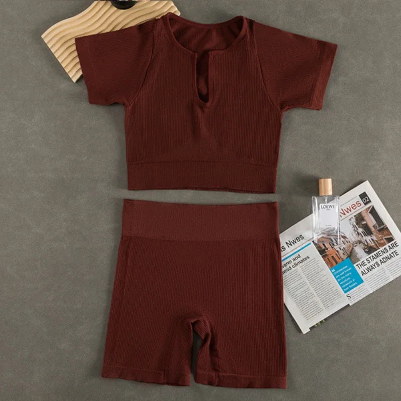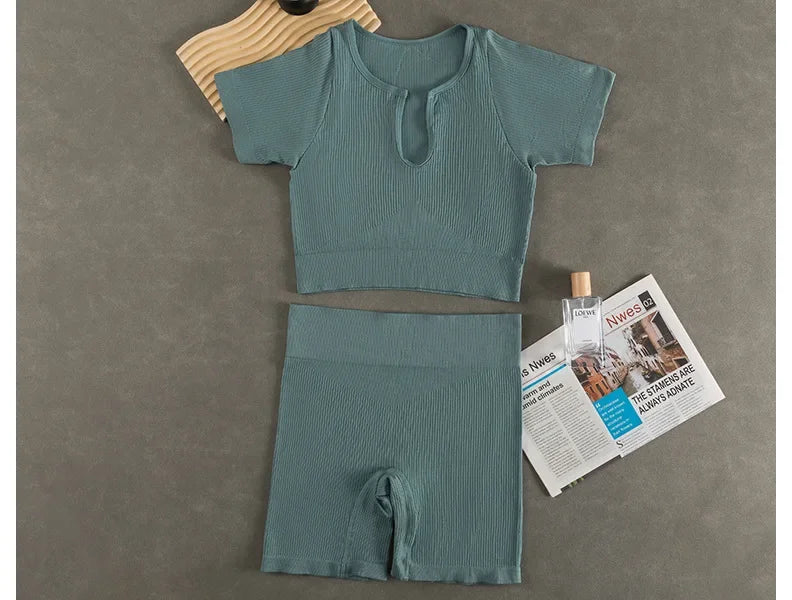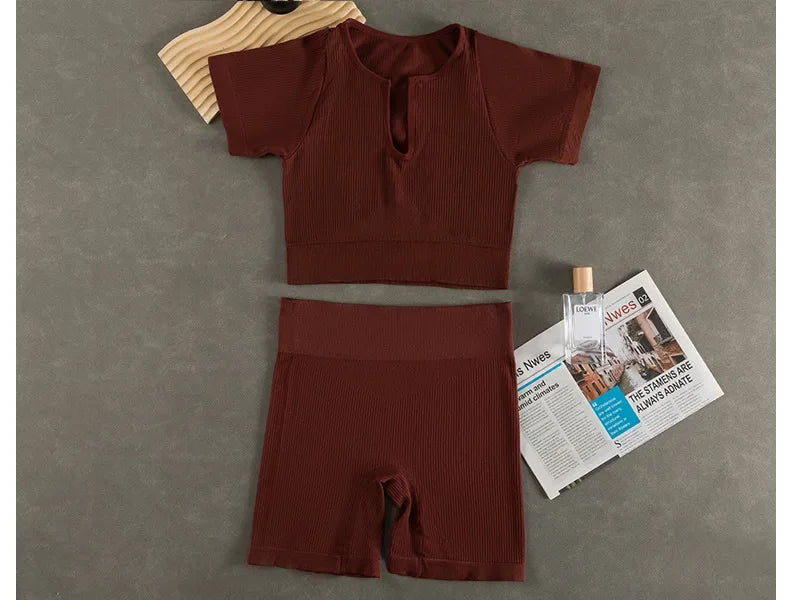 - Triangle-style top paired with shorts-length bottoms, offered as a two-set pack, creates a flattering, athletic silhouette and easy layering for studio sessions, yoga, or everyday wear.