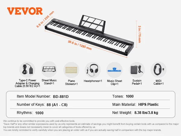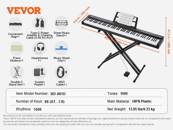 - Lightweight, durable construction using HIPS plastic offers portable, classroom-ready reliability for daily use at home, in studio, or on stage.